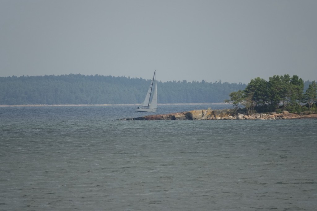 Tämä purjevene oli matkalla etelään lähellä väylää.