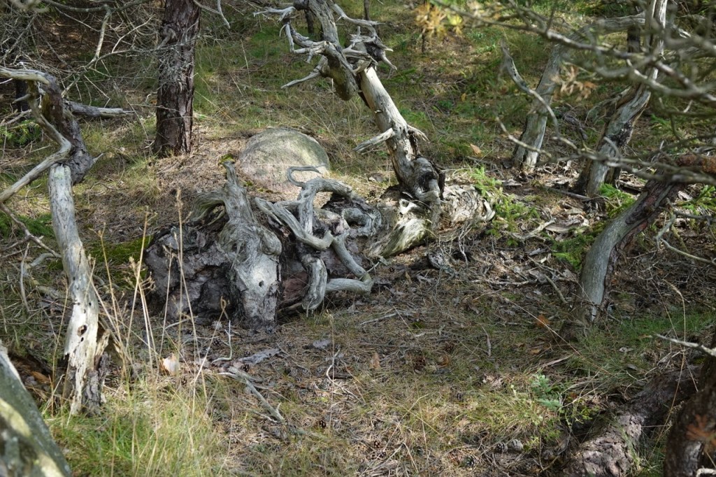 Kelottuneiden puiden juurakko. En tiedä oliko yhden puun vai solmussa monenkin kanssa.