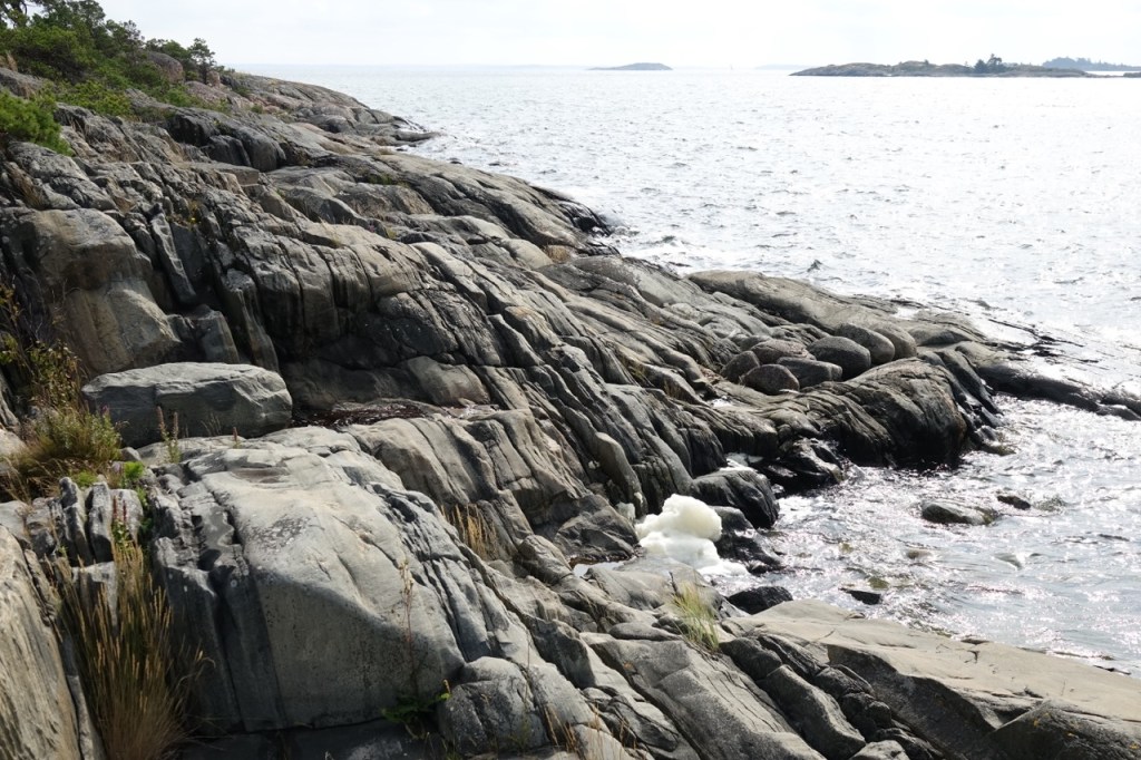 Vastakkaiseen kallioon tullut hieno ura, kun veneilijät kiivenneet ylös.