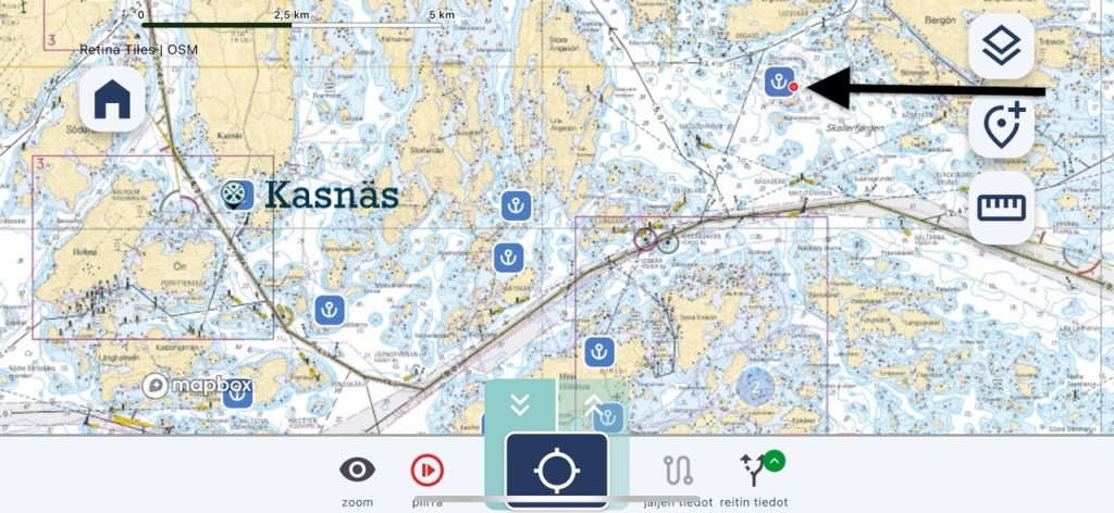 Matkaa Kasnäsistä tuli vain kahdeksan mailia. Eikä tänne tullessa tarvitse väylältä poiketa kuin ihan loppu metreillä.