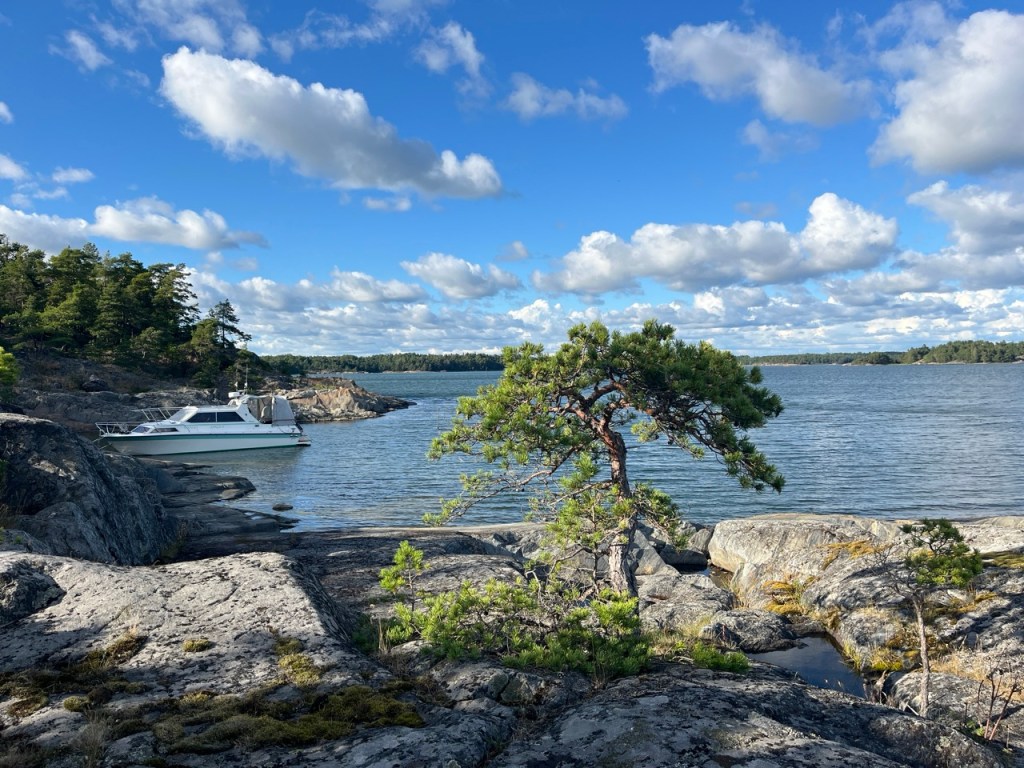 Tuo pieni kallioniemeke antaa hyvän suojan tuulelta, vaikka se kääntyikin iltapäivällä luoteeseen.