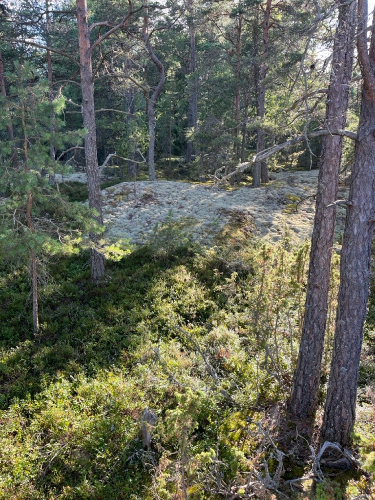 Puiden seassa upeita jäkälikköjä ja varvukkoja.