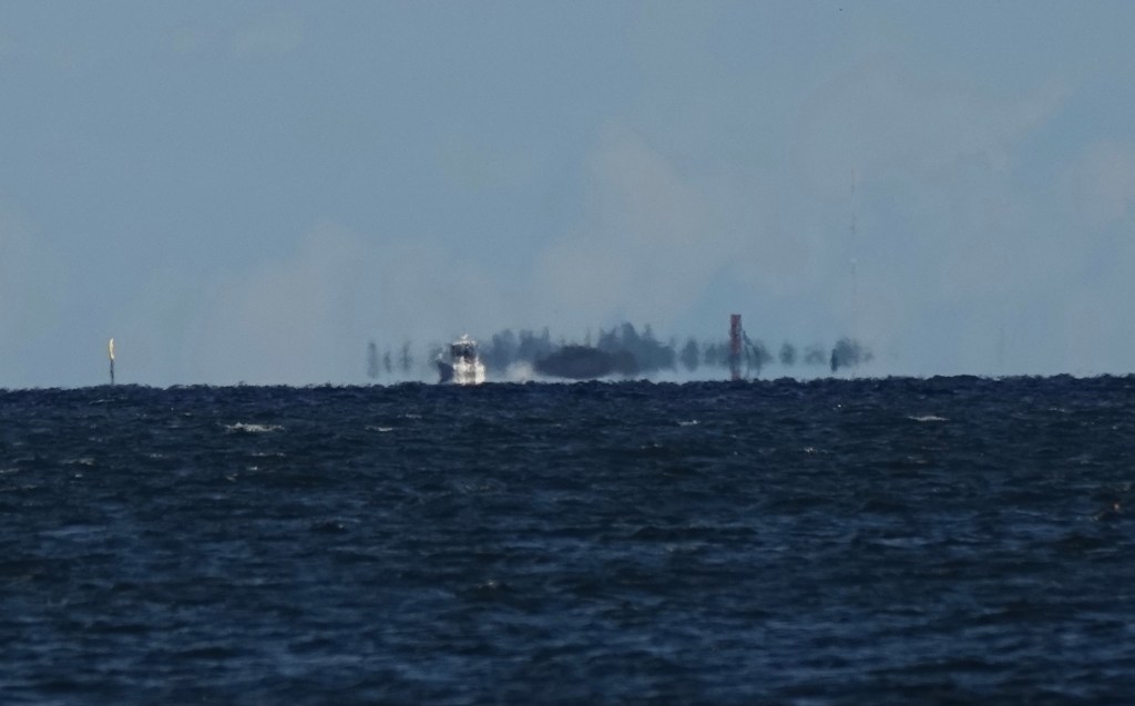 Mielestäni kuva on melkein kuin taideteos. Saaret kauempana osittain häviävät horisontiin. Matkaa moottoriveneeseen ehkäpä 3-4 mailia saariin tuplasti.
