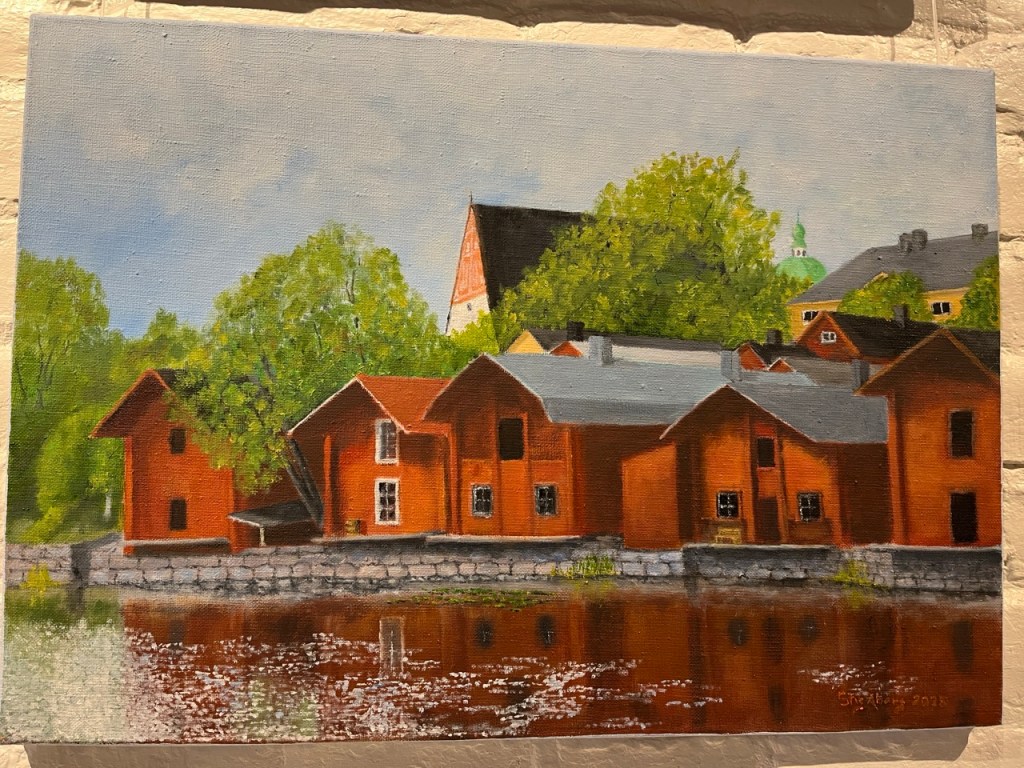 Tämä Porvoosta tehty työ herätti erityisesti mielenkiintoni. Miten elävän oloiseksi oli saanut joen pinnan. Kuva ei anna oikeutta tälle upealle työlle.
