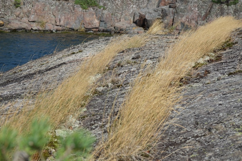 Kovassa, puuskaisessa tuulessa heinät taipuivat välillä melkein kalliota vasten.