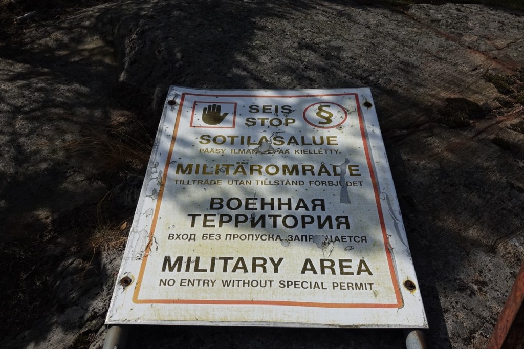 Kallion päällä Sarzan oikealla puolella on kaadettu vanha puolustusvoimien kieltotaulu.