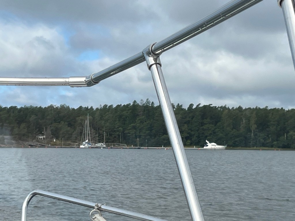 Sää oli pilvipoutainen eikä nyt ollut kuin n 30-40 senttistä aaltoa ylittäessämme porkkalan.