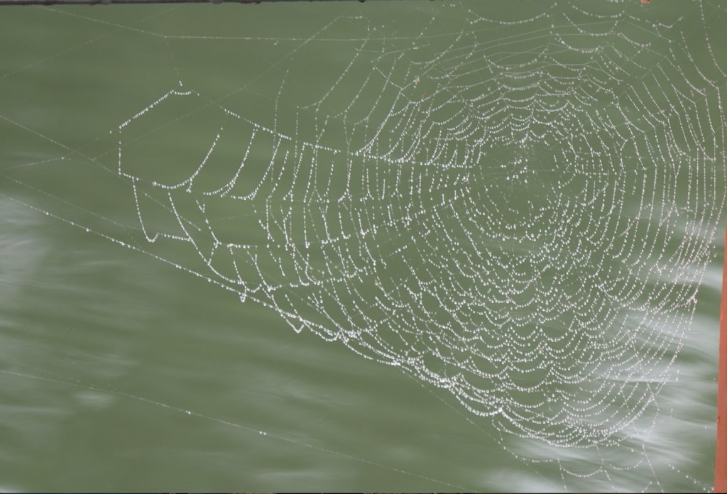 Olen aina halunnut ottaa hämähäkin verkosta tällaisen ”helminauha”kuvan.
