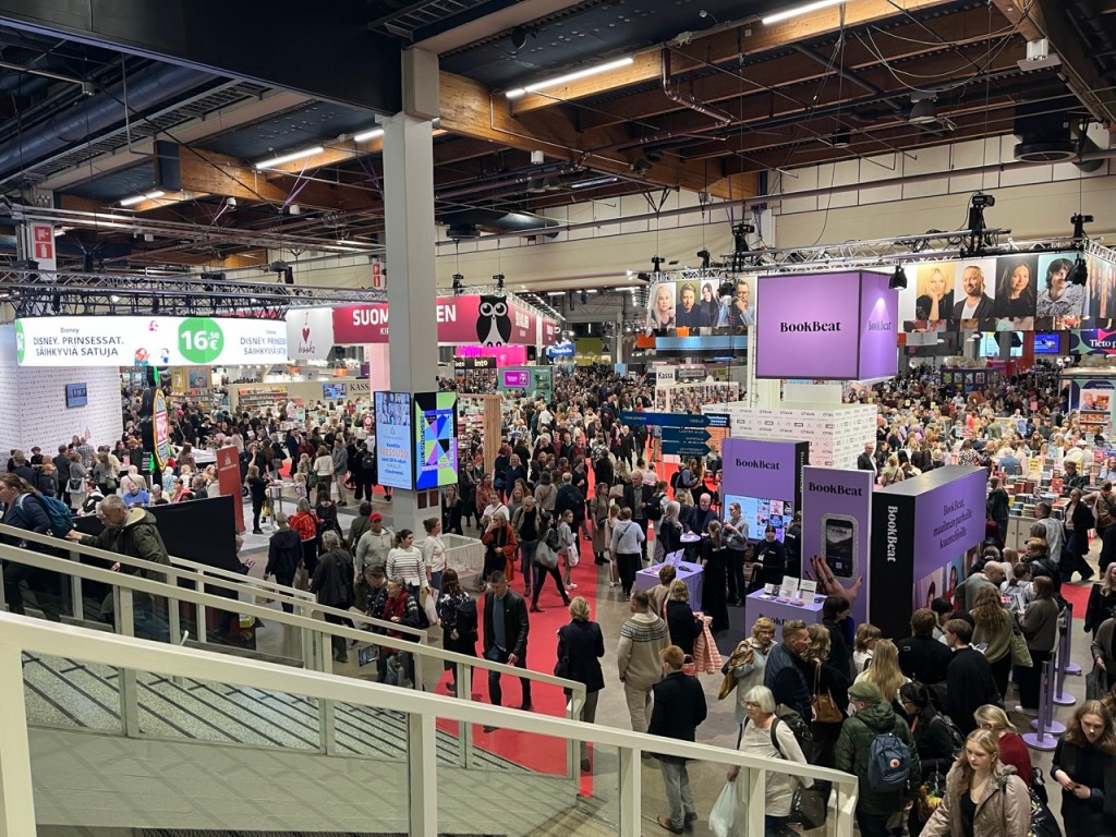 Porukkaa oli tosi paljon. Niinpä kirjamessut tekivätkin uuden kävijäennätyksen. Neljän päivän aikan kävi yli 100-tuhatta kirjallisuudesta kiinnostunutta kävijää. Se on aika paljon.