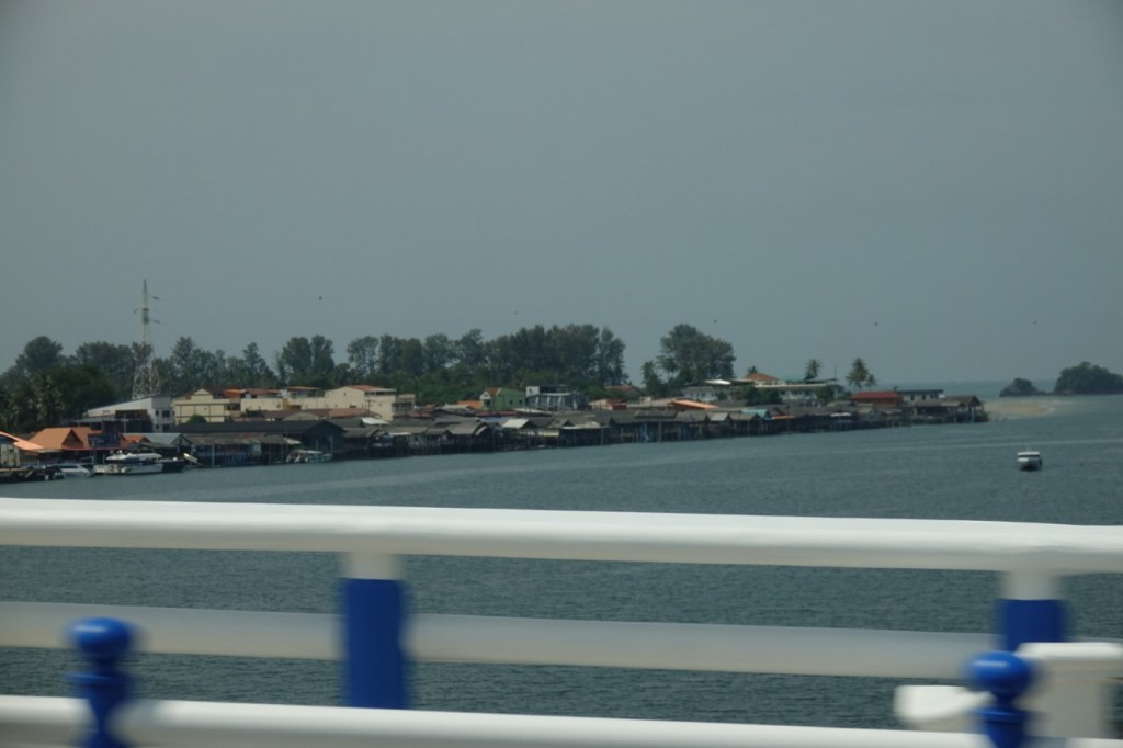 Vielä oli ylitettävä yksi salmi, ennen kuin varsinaisesti pääsimme Lantalle. Tässä oli onneksi silta ja sillan länsipuolella näkyi Saladin kalastajakylä. Tänne tulevat ja lähtevät lautat ja pikaveneet niin Phuketista kuin Krabilta.