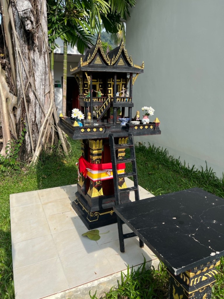 Suurin osa paikallisista ovat muslimeja. Eli residensimme mökkien välissä on tällaisia rukouspaikkoja parikin erilaista. Eivät olekaan rukouspaikkoja, vaan henkien taloja. Esi-isien henget asuttavat näitä? Eli ei kuulemma ole muslimien kanssa mitään tekemistä.