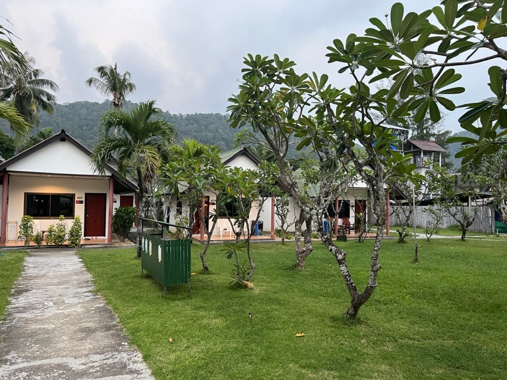Tällaisia pikku bungaloveja rauhallisessa ja siistissä, meren edustalla olevassa ympäritössä.