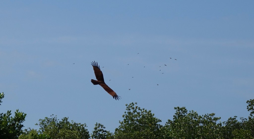 Siellä näimme vilauksen myös krokotiilistä. Oli vain sen verran juurakoiden seassa, ettei kamera kerennyt tarkentaa kunnolla.
