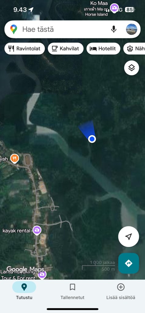 Tässä kohdin olimme suurinpiirtein, kun krokotiili nähtiin.