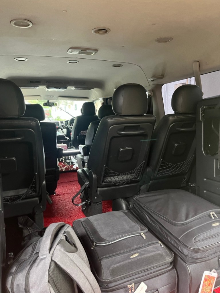 Tilaamamme taxi tuli ajallaan noutamaan meidät. Kuski tunnisti heti meidät, vaikka minä en häntä tunnistanutkaan. Samalla autolla tulimme tänne resortiin. Autu on siisti ja vain viisi penkkiä takana, joten matkalaukkuja sopisi enemmänkin taakse.