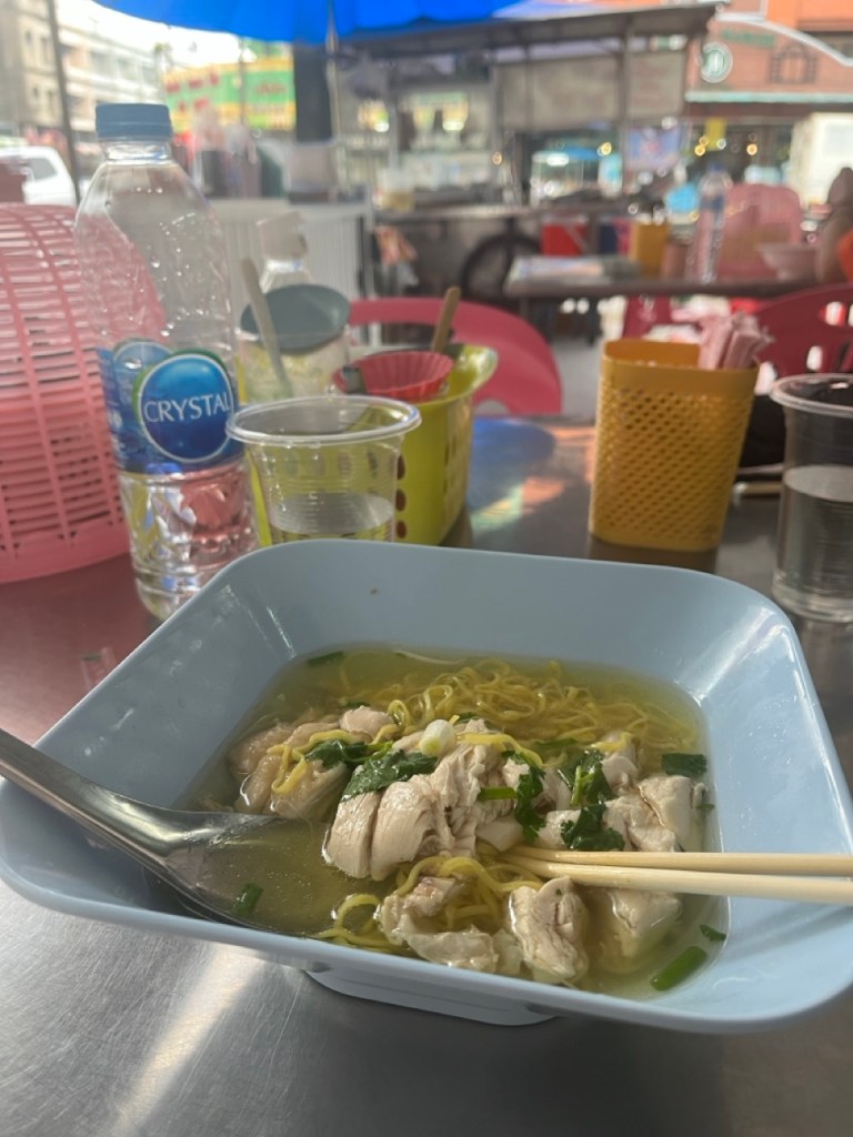 Tällä kertaa valitsimme katukeittiön välipalamme paikaksi. Kaksi todella maukasta kana-nuudelikeittoa ja vesipullo.