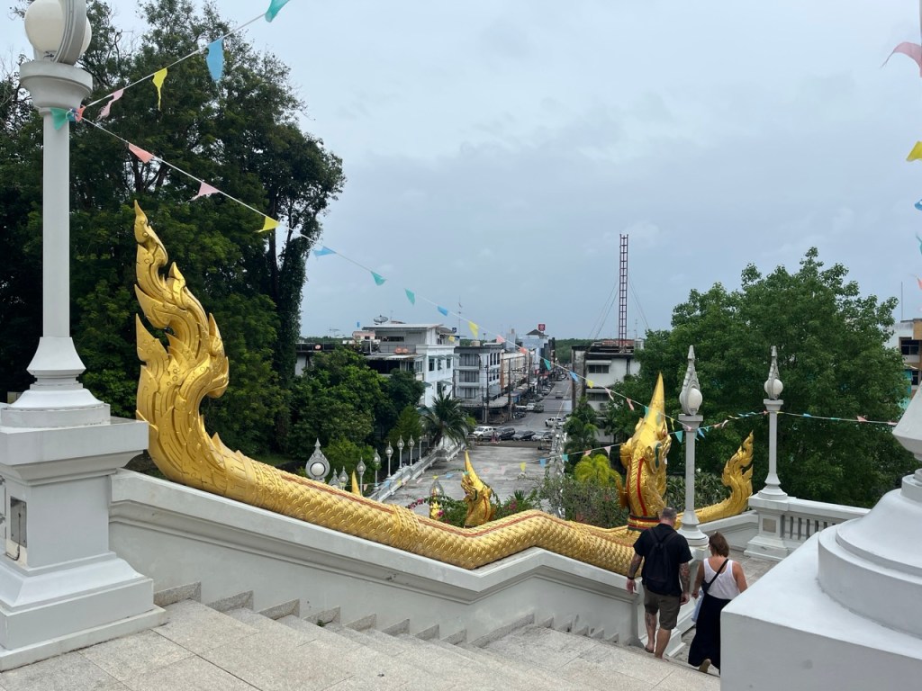 Wat Kaew Korawaram (Thai: วัดแก้วโกรวาราม) is a Buddhist temple in the city of Krabi, Thailand. Located on a hill above the city’s downtown, it is accessed by an entrance plaza off one of the city’s main streets and a grand staircase lined by nāga sculptures.
