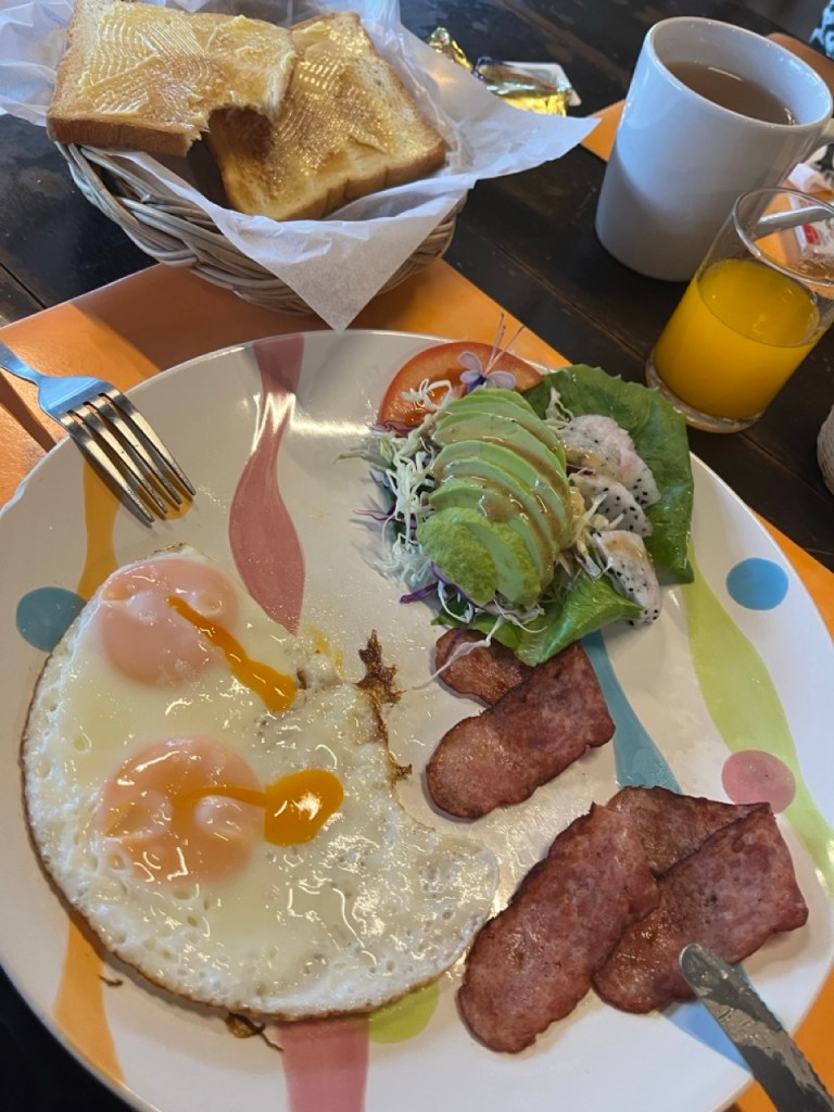 Hotellimme aamupala on vaatimaton, mutta kuitenkin ihan riittävä. Ehkäpä jugurttia jäimme kaipaamaan. Sitä kun tuli Lantalla joka aamu syötyä, niin vähän niin kuin tottui siihen.