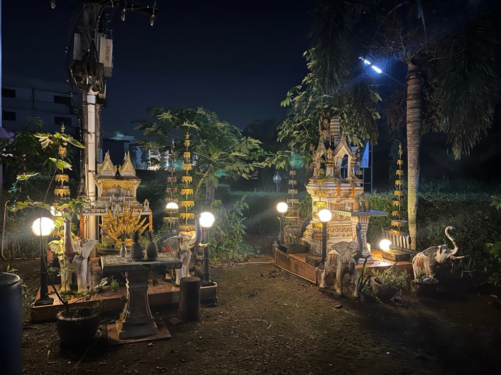 Hotellimme pääoven lähellä on vainajien hengille oma paikkansa. Tarkoituksella otin illan valossa kuvan.
