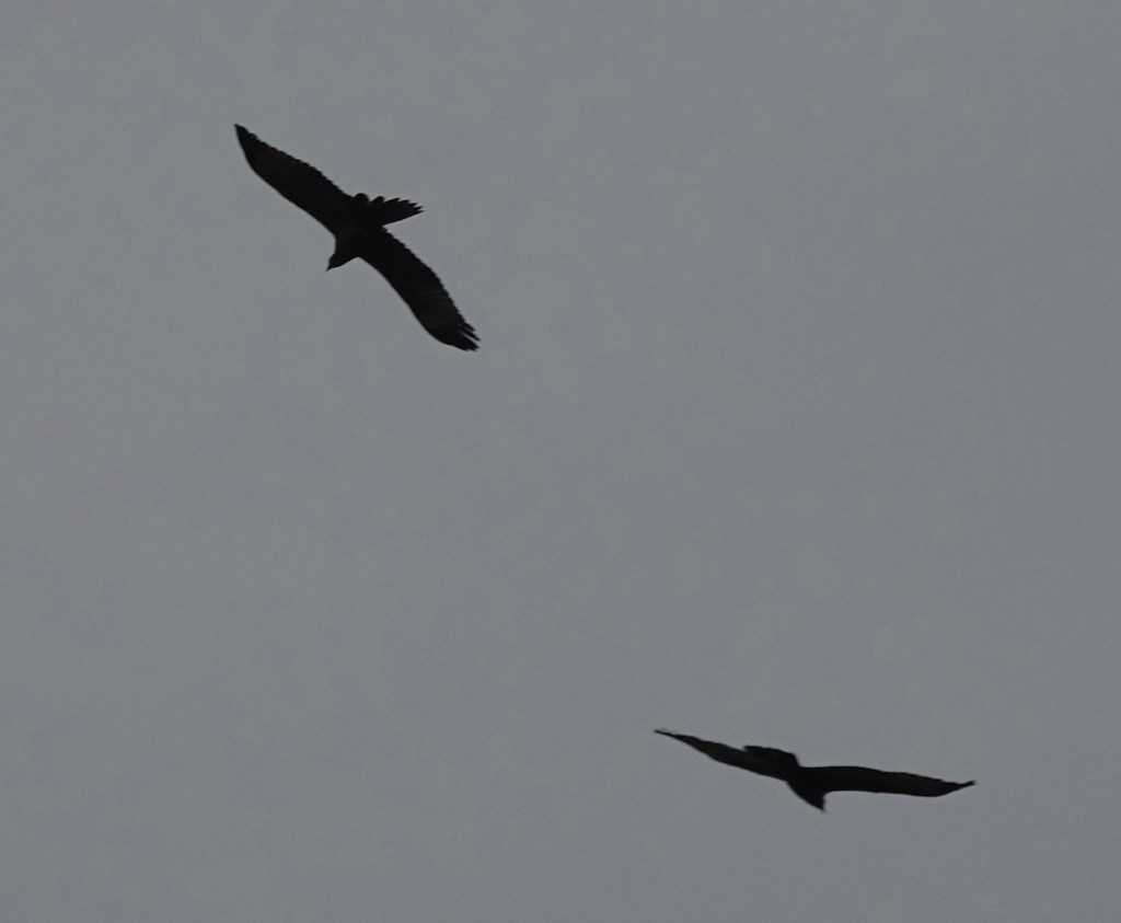 Pari kotkaa liiteli välillä kaukana taivaalla. Yritin ottaa kuvia niistä, mutta vapaalla kädellä ei tahdo tulla mitään.