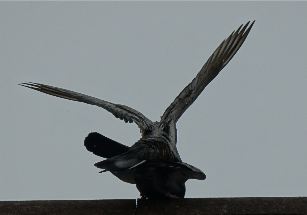 Kyyhkyt kujertelivat hotellin harjalla. Aikani kun seurailin, pääsin kuvaamaan ”oikeita” tapahtumia.